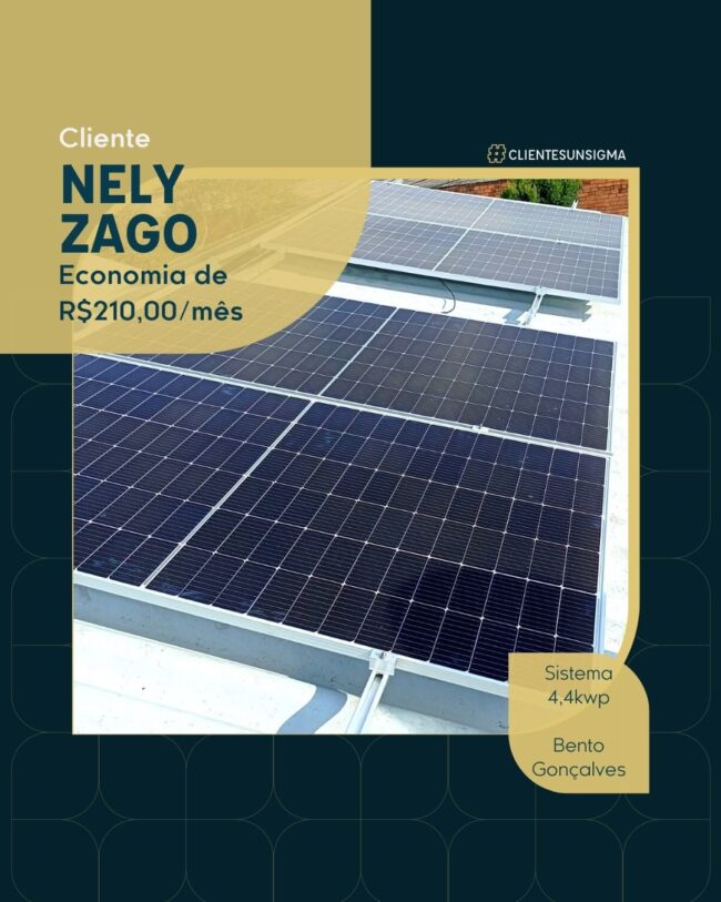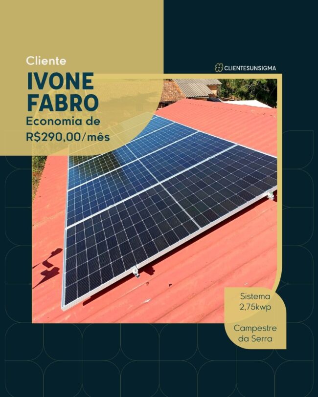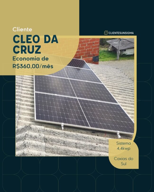Volnei investiu em um sistema de 6,72 kwp para atender a sua família, em Caxias do Sul. Hoje, eles economizam cerca de R$500,00 mensais na conta de luz.
