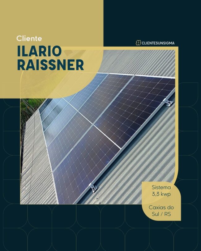 Ilário Raissner, de Caxias do Sul, é mais um de nossos clientes que agora economizam cerca de 95% na conta de luz, todo o mês.